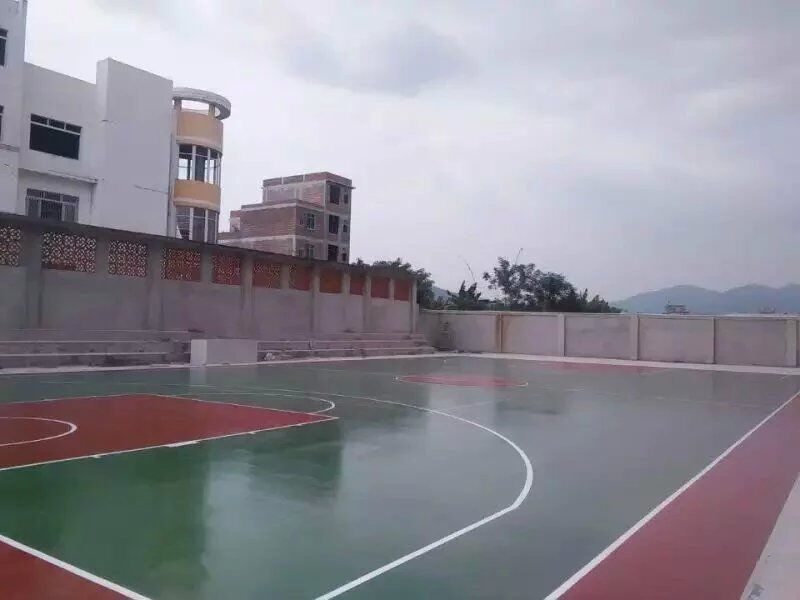 蘄春縣蘄州鎮硅PU籃球場完工,深圳北站丙烯酸材料進場